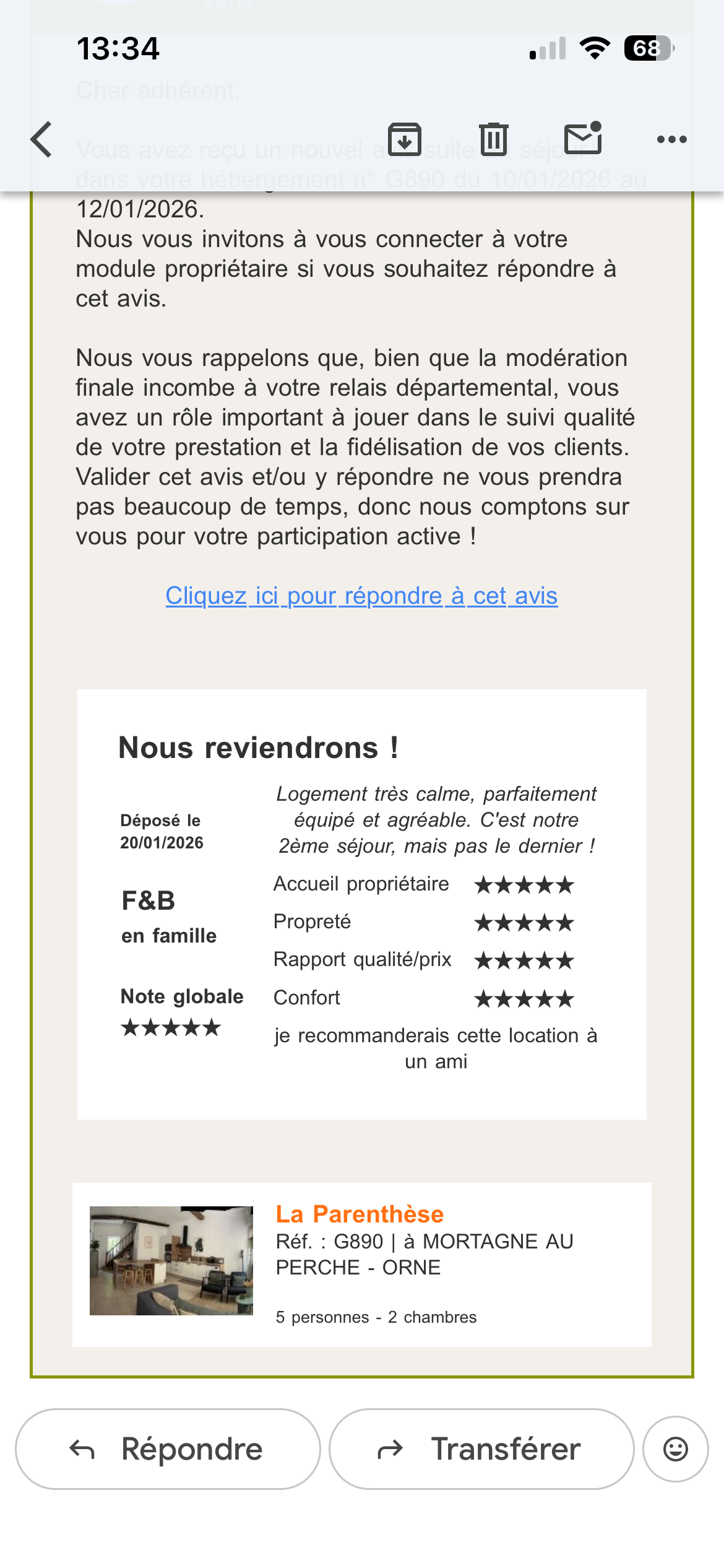 Avis des hôtes après leur séjour